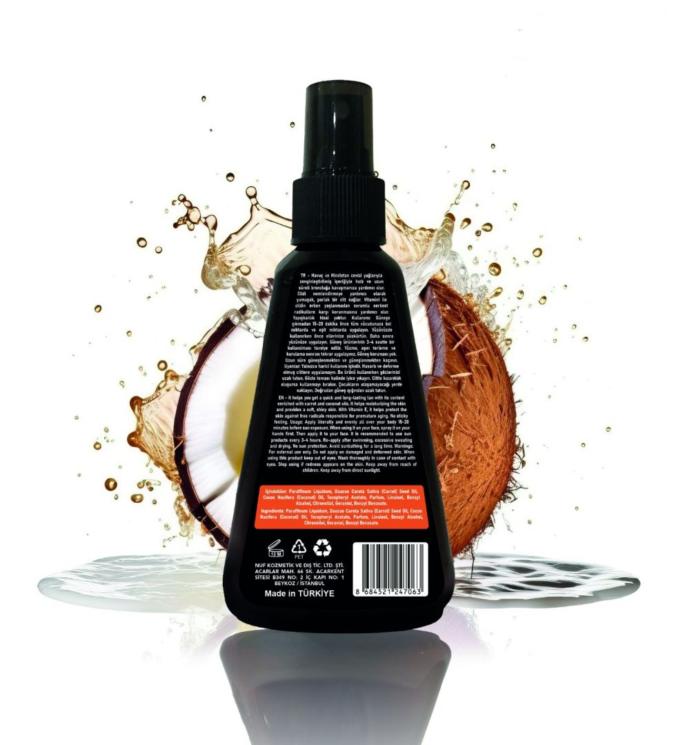 Hızlı ve Kalıcı Bronzlaştırıcı Güneş Yağı, cildinizi beslerken mükemmel bronzluk sağlar. İçeriğindeki havuç yağı, cildinizi nemlendirir ve doğal bir ışıltı kazandırırken, hindistan cevizi yağı ise cildinizi yumuşatarak,bronzluğunuzu uzun süre korur.
